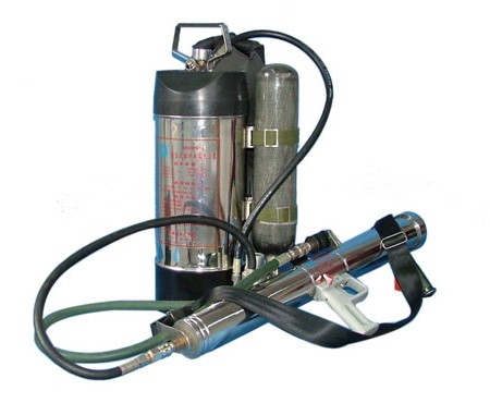 QWMB-12型背负式脉冲气压喷雾水枪,是以少量的水(也可以在水中加入水成膜发泡剂和阻燃剂)作为灭火介质(以下简称水),以30Mpa的压缩空气为动力,用雾化吸热、隔绝氧气、冲击波等措施为一体,实施全方位灭火的新型单兵作战装备。它特有的灭火机理和结构设计,使其具有灭火速度快、效率高、水的利用率高、水渍损失小、减少二次污染、操作简便、机动灵活。1.灭火级别达到3A、144B、E类国标4351.1-2005。